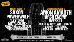 Line-up vrijdag:SaxonPowerwolfAlestormMetal ChurchFlotsam and JetsamThe Charm The FuryLine-up zaterdag:Amon AmarthArch EnemyOverkillLife Of AgonySodomWhitechapelTexturesPro-PainEmber Falls